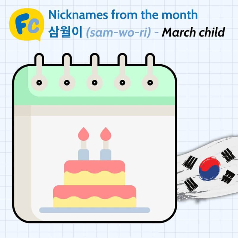 Some popular names were 삼월이 (sam-wo-ri), 사월이 (sa-wo-ri), 오월이 (oh-wo-ri).